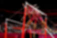 On the uneven bars the gymnast navigates two horizontal bars set at different pre-set heights yet alterable widths. Gymnasts perform swinging, circling, transitional, and release moves — as well as moves that pass through the handstand. The most common way to mount these bars is by jumping towards the lower bar first. The uneven bars requires strength, precision, rhythm, concentration and courage.